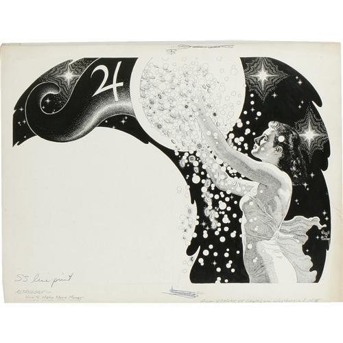 <B>Virgil Finlay - Astrology Magazine Illustration Original Art (undated).</B></I> This delightful scene was titled "How to Make More Money," and its talented creator must have wondered how he could do the same. For years, Virgil Finlay conjured up the most fantastic and dazzling drawings for the fantasy field, for which he was paid the most meager of sums. Finlay exemplified the committed artist who gave his all to his art, no matter the lack of financial reward. This stunning piece has an overall size of 12.5" x 9.5". The center right edge has a tear (which barely enters the image area); otherwise, the art is in Very Good condition.<BR><BR><b>Shipping:</b> Flat Material, Small (<a target="_blank" href="http://www.heritageauctions.com/common/shipping.php">view shipping information</a>)