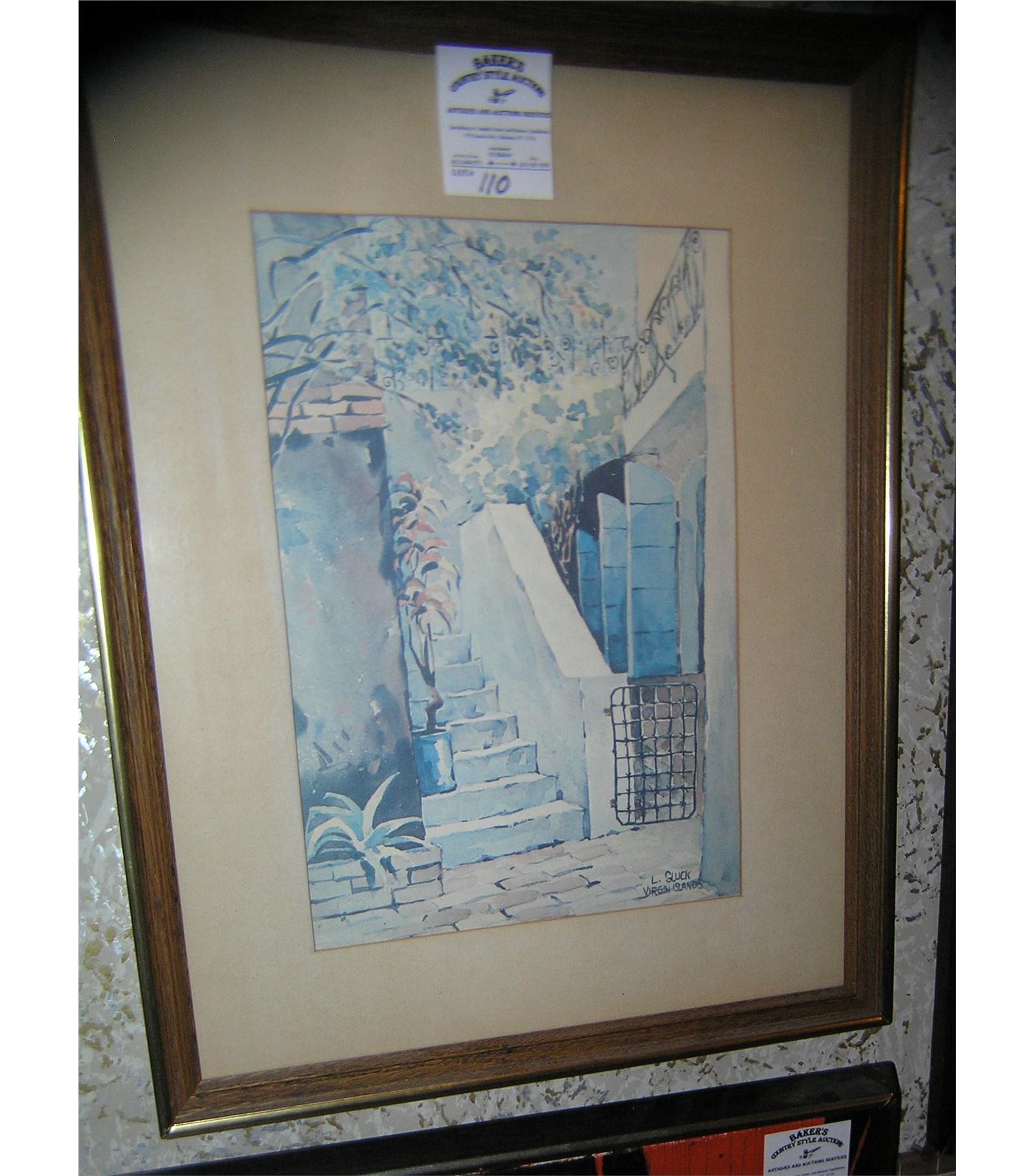 Virgin Islands print by L. Gluck matted and framed est. value $65.00-$75.00