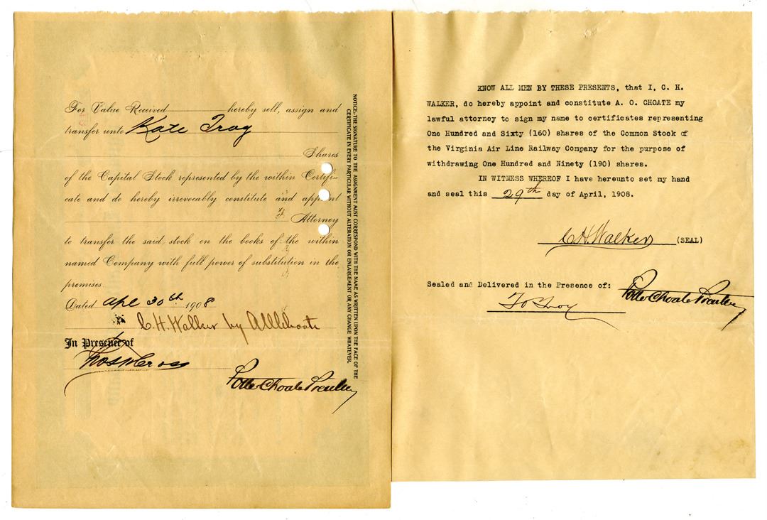 Virginia….., 1908. Lot of 2 I/C Sequential Stock Certificates, Low serial numbers: 17 & 18. Punch out cancelled at bottom, VF-XF condition. (2). Sold "AS IS" no returns accepted.