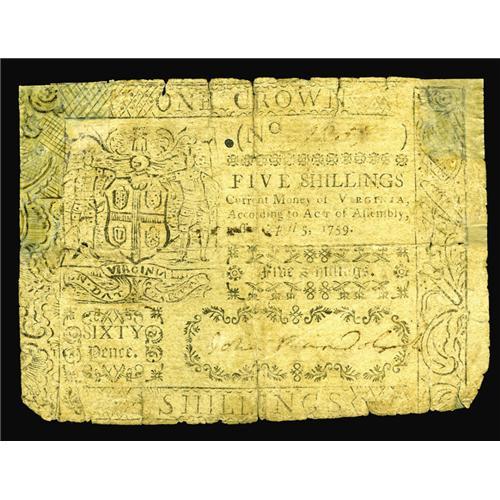 Virginia April 5, 1759 5s Very Good. Unlike the 1759 is Virginia April 5, 1759 5s Very Good.