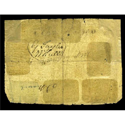 <B>Virginia April 5, 1759 5s Very Good.</B></I> Unlike the 1759 issued from Pennsylvania, Virginia's issues are quite scarce. In recent years we have not handled any denomination of this issue. The note itself is strengthened by archival tape, but boasts much of its original details.