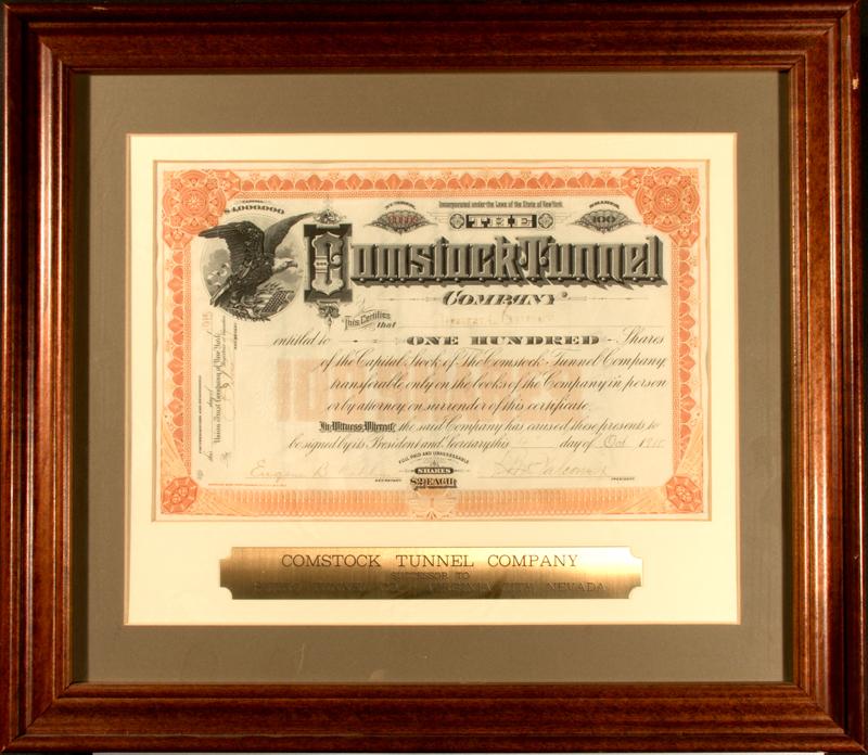 Virginia City,NV - Storey County - 4 October 1915 - Comstock Tunnel Company Stock Certificate, Frame