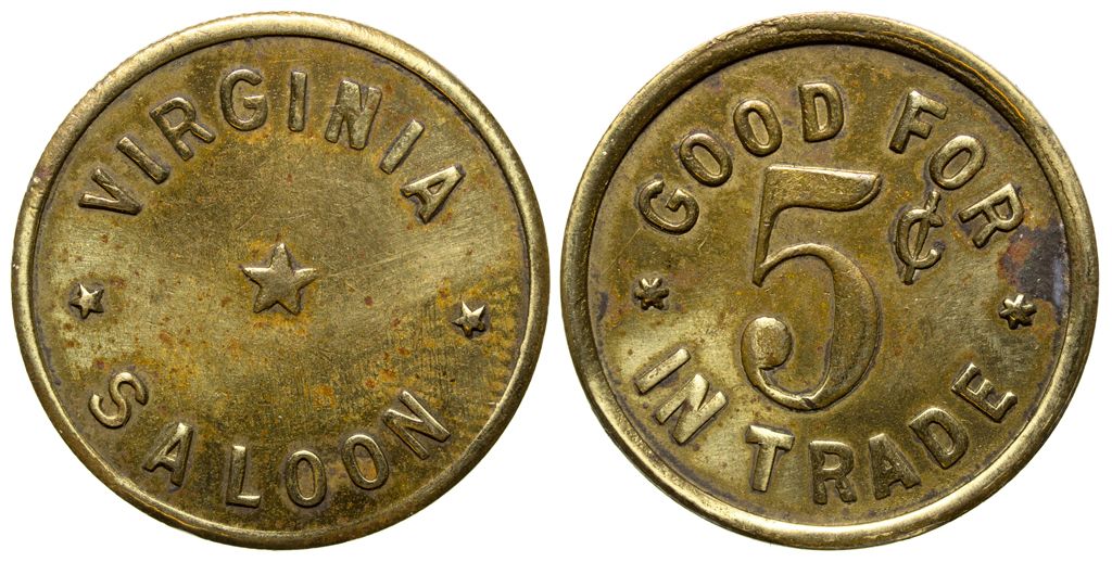 Virginia Saloon Token-GOOD FOR 5 CENTS IN TRADE-brass 22mm.