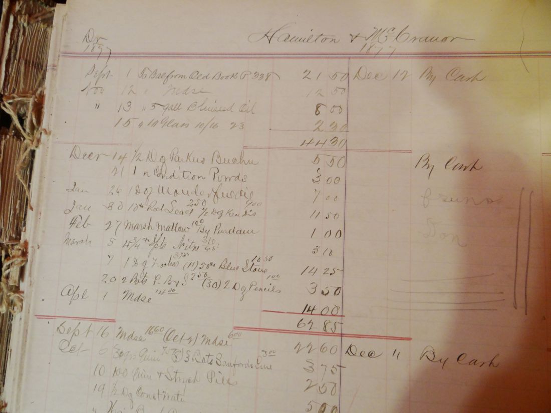 Virginia City ledger book, from Rank's Drug Storre, with customer accounts, entires from 1877-1880, many well known historical figures