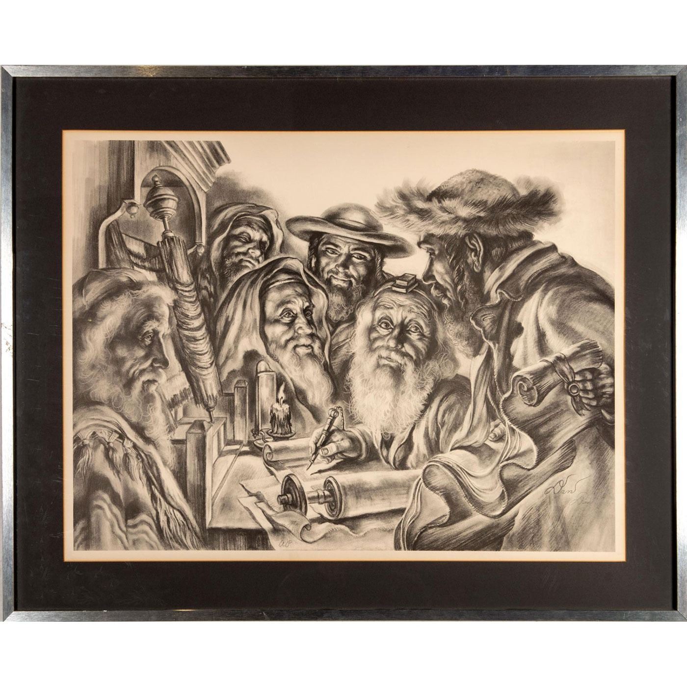Virginia Dan (American 1922-2014) Lithograph, Reading of the Skroll