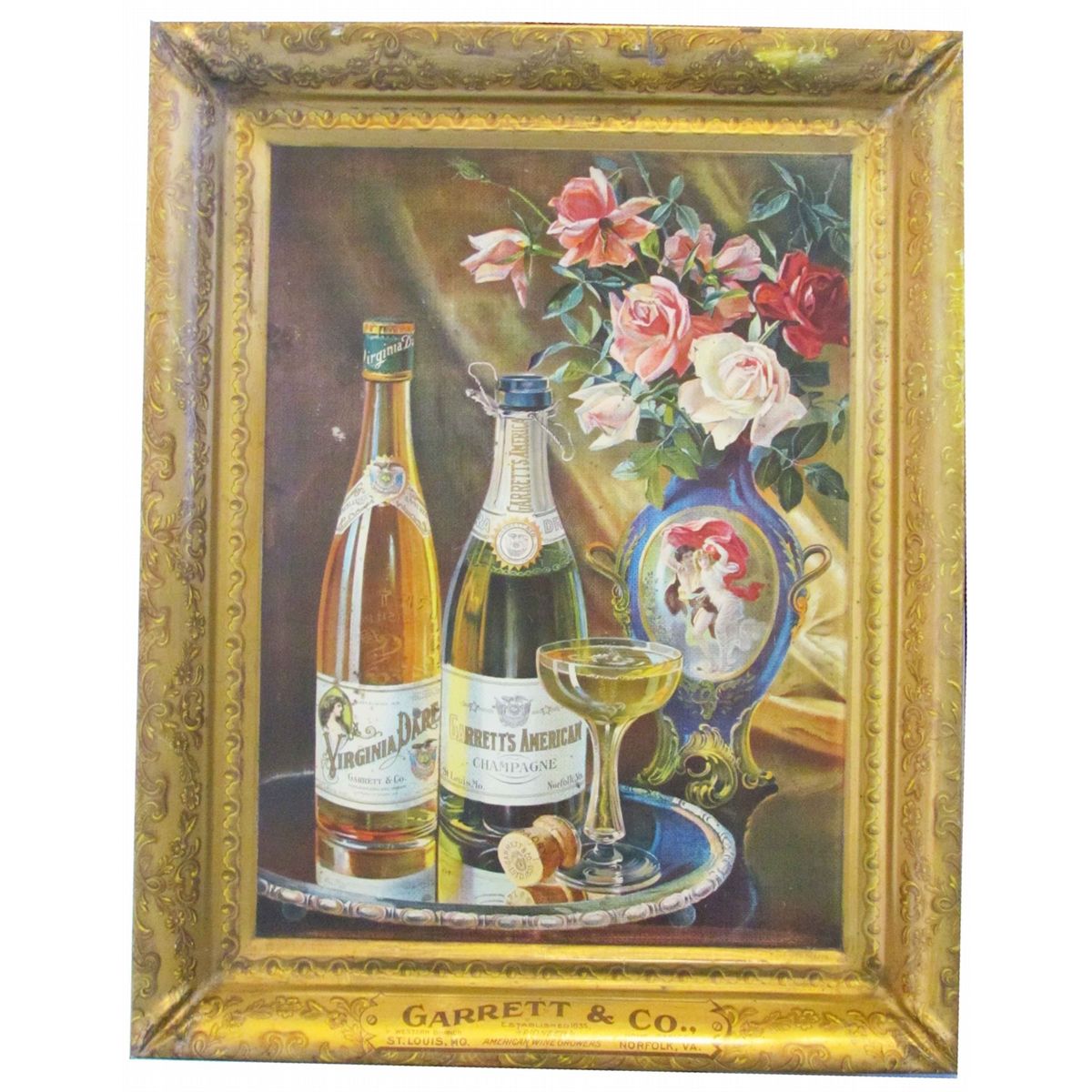 Virginia Dare Wine Self Framed Tin Sign. A few rubs otherwise very good condition. 15 X 19 inches.