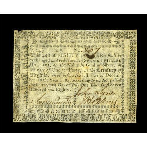 Virginia July 14, 1780 $80 Extremely Fine. The thin pap