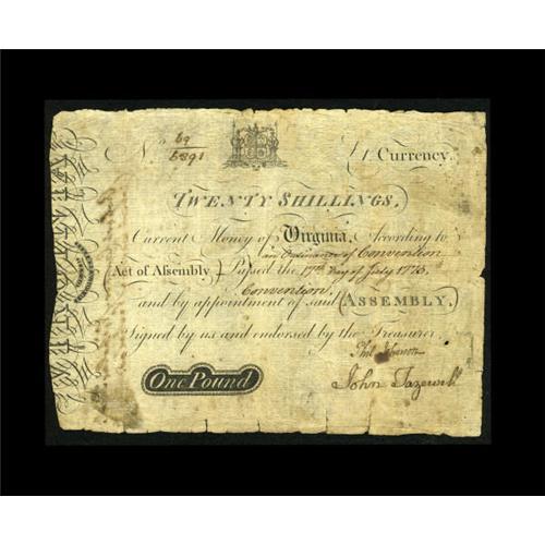 Virginia July 17, 1775 20s Very Fine.