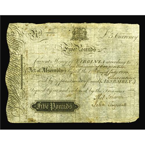 Virginia July 17, 1775 $5 Very Fine. Here is a lovely