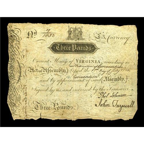 Virginia July 17, 1775 L3 Very Fine. Clearly well-circu Virginia July 17, 1775 L3 Very Fine.