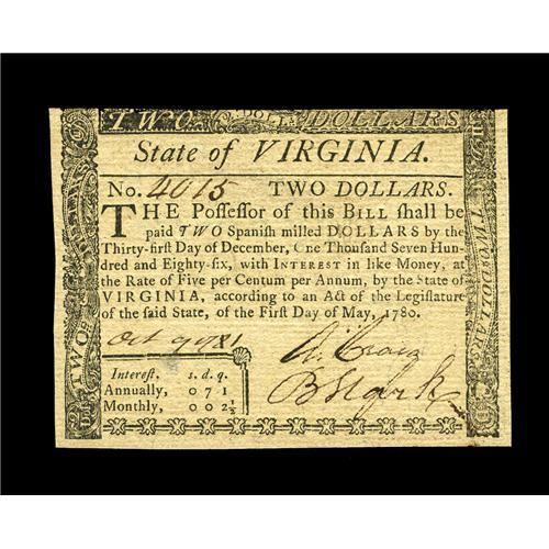 Virginia May 1, 1780 $2 Very Choice New. A perfect Gem Virginia May 1, 1780 $2 Very Choice New.