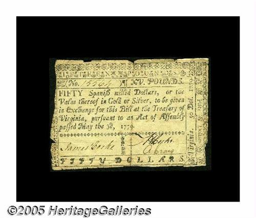 Virginia May 3, 1779 $ 15 Very Fine. Essentially