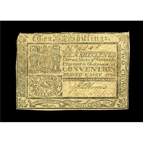 <B>Virginia May 6, 1776 10s.</B></I> A rounded corner is found on this example of an issue we have rarely encountered.