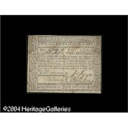 Virginia May 7, 1781 $200 Extremely Fine. Other tha <B>Virginia May 7, 1781 $200 Extremely Fine.</B></I> Other than a little light stain, this is a perfect example of the type. There are no other problems. The signatures are strong and the design is not cut by any margin. <BR><BR><B>Important notice:</B> Heritage usually auctions material at the rate of 200-250 lots per hour. On some occasions eBay Live bid software or the Internet may not be able to keep up with the pace of the auction. We recommend placing a realistic absentee bid now as insurance to avoid disappointment. Occasionally the auctioneer may eliminate or reject an eBay Live bid, and the auctioneer may also reopen a lot after the close of the eBay live bidding (usually because we missed an audience bid), and may reject your bid even if it shows you as the winning bidder. By bidding via eBay Live, you agree that Heritage may award the lot to another bidder at its sole discretion under the circumstances described above or any other reasonable circumstances. Since eBay bids are not shown to us until we open the lot on the floor, we treat those bids just like floor bids. In most cases the floor responds before the eBay bid is presented to us, due to Internet lag time, so for consistency we have made it a policy that floor bids are always considered first over tie eBay live bids. Also please note that all Heritage lots purchased through eBay Live carry a 20% Buyer's Premium. Please make sure you read the Terms and Conditions before you bid. This lot is being auctioned in conjunction with a live floor auction by Heritage Galleries & Auctioneers. All final auction and invoice information will be supplied by Heritage Galleries & Auctioneers, and all other information should be considered preliminary. Lot:15323