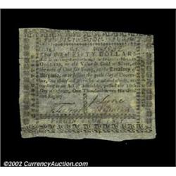 Virginia October 16, 1780 $50 About New. The top margin is tight, and there are a few very minor edge splits, but the overall appearance of this thin-paper note is spectacular. It's completely clean, and it has three strong signatures that have not eaten through the paper. Important notice: We expect to be auctioning lots at the rate of 200-250 per hour. Sometimes eBay Premier live bid software cannot keep up with that pace, so we strongly recommend that you place a realistic proxy bid now as insurance to avoid disappointment. Also please note that all Heritage/CAA lots purchased through eBay Premier carry a 20% Buyer's Premium. Please make sure you read the Terms and Conditions.