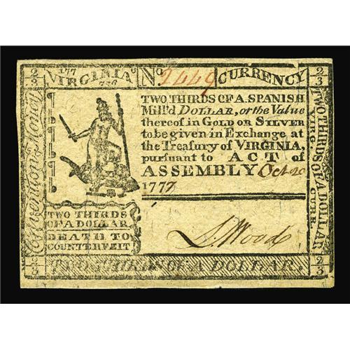 Virginia October 20, 1777 $2/3 Very Choice New. An outs Virginia October 20, 1777 $2/3 Very Choice N