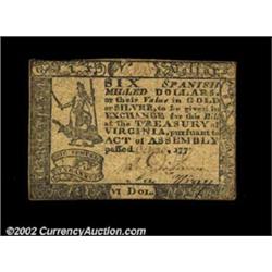 Virginia October 20, 1777 $6 Extremely Fine. This is a closely margined but problem-free example of.