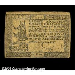Virginia October 20, 1777 $8 Very Fine. This note has seen some circulation, but it's well margined and absolutely problem-free. Important notice: We expect to be auctioning lots at the rate of 200-250 per hour. Sometimes eBay Premier live bid software cannot keep up with that pace, so we strongly recommend that you place a realistic proxy bid now as insurance to avoid disappointment. Also please note that all Heritage/CAA lots purchased through eBay Premier carry a 20% Buyer's Premium. Please make sure you read the Terms and Conditions.