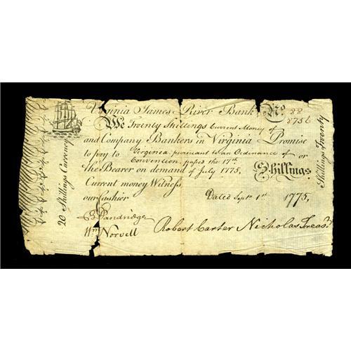 Virginia September 1, 1775 20s Very Fine. Not much to l Virginia September 1, 1775 20s Very Fine.