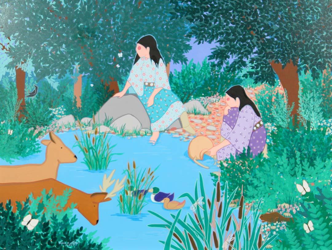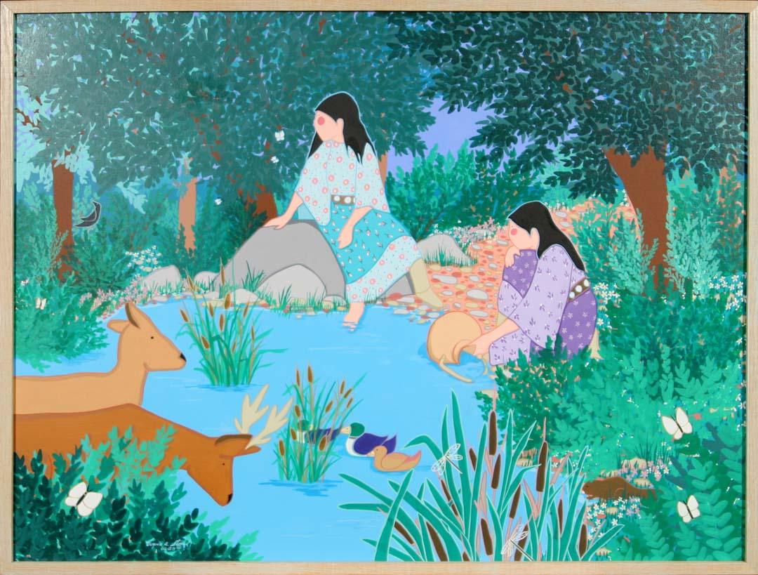 Virginia Stroud (b.1951). The Watering Hole, 1989. 30" x 40" acrylic on canvas. Signed lower left. (est $600-900). Provenance: Ex-La Junta, Colorado Estate. For condition reports please visit: www.auctioninsantafe.com/cr2011.pdf