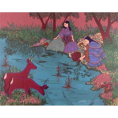 Virginia Stroud (1951-), Serigraph, By the River, 22 1/2" x 28 1/2", Artist Proof, Signed lower right.