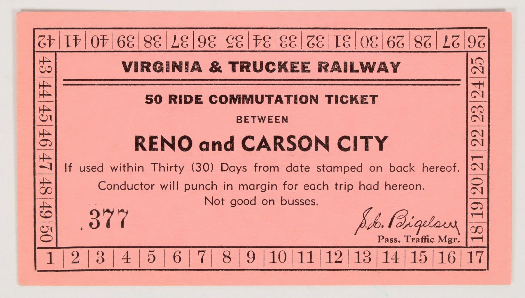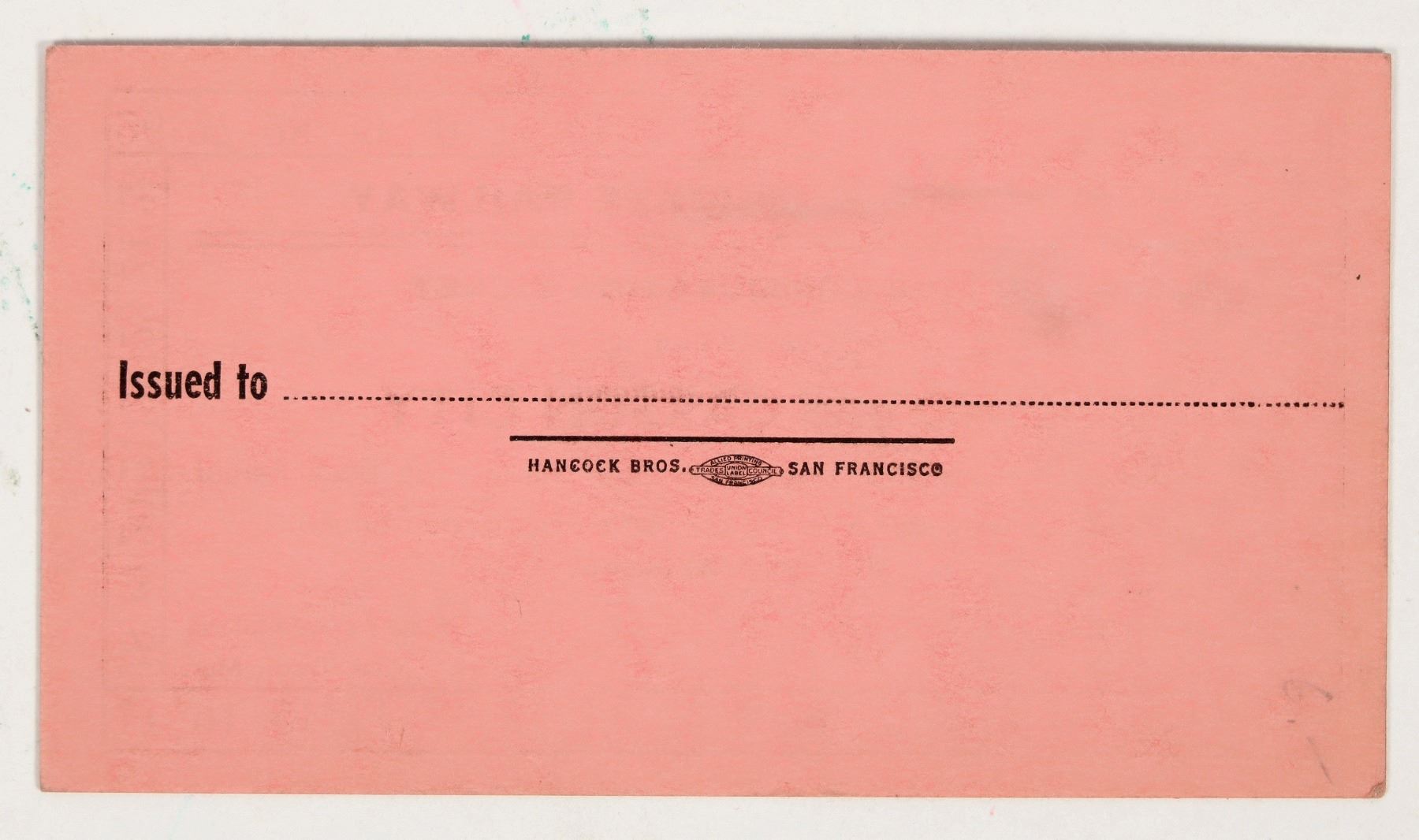 Rare. Unused. Good between Reno and Carson City. Black print on pink cardstock. 2.5 x 4.5"