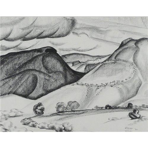 Virginia True (1900-1989), Charcoal, "New Mexico-Ottowi 1936, Pencil signed lower right.