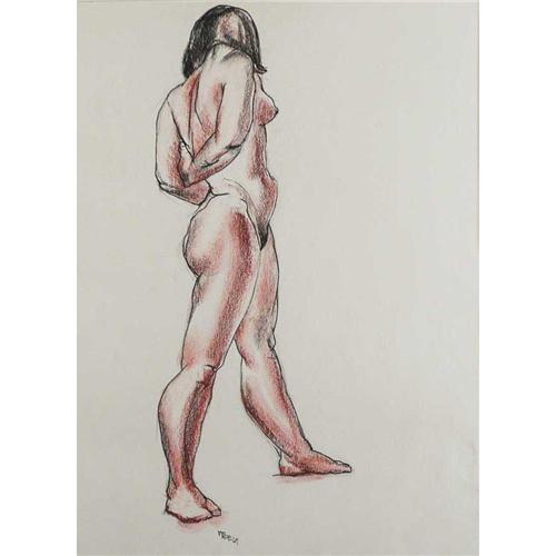 Virginia True (1900-1989), Pastel/Pen, Standing Nude, 15" x 11", Signed mid-bottom '69.