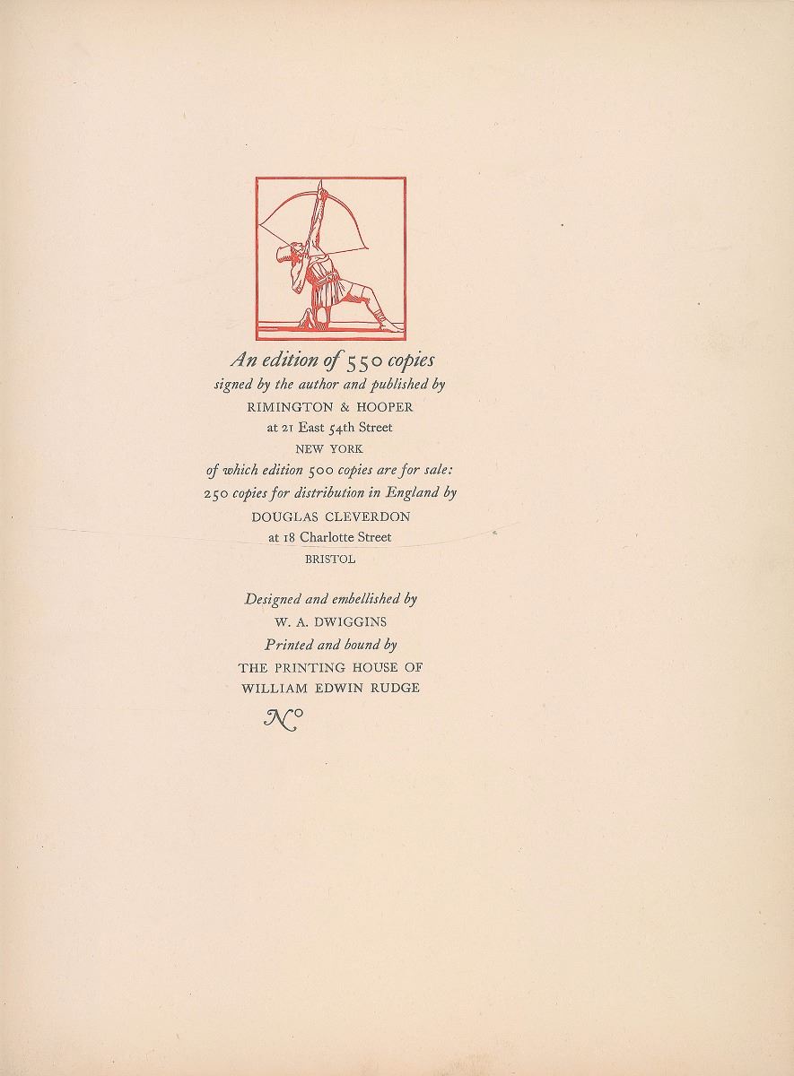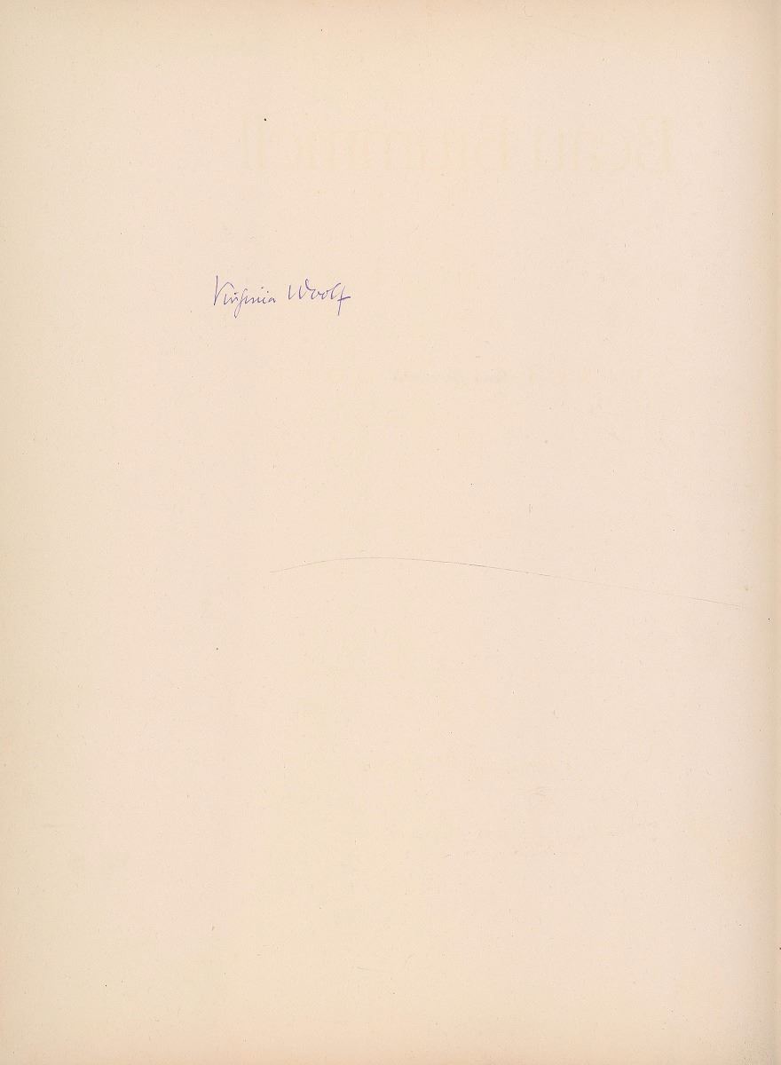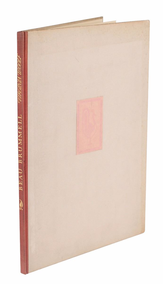 Signed book: Beau Brummell. Limited edition of 550, this example unnumbered. New York: Rimington & Hooper, 1930. Hardcover, 9.5 x 12.75, eight pages. Neatly signed on the reverse of the half-title page in purple ink, “Virginia Woolf.” Autographic condition: fine. Book condition: VG/None. A rare and desirable edition.