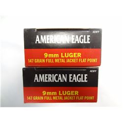 2 BOXES AMERICAN EAGLE 9MM LUGER 147GR FMJ FP