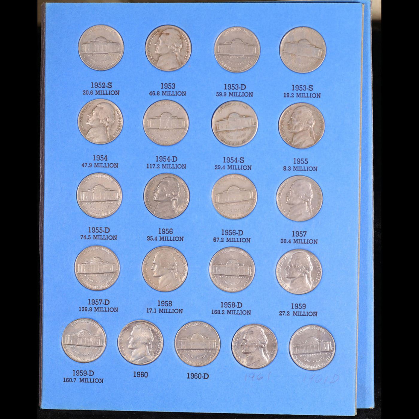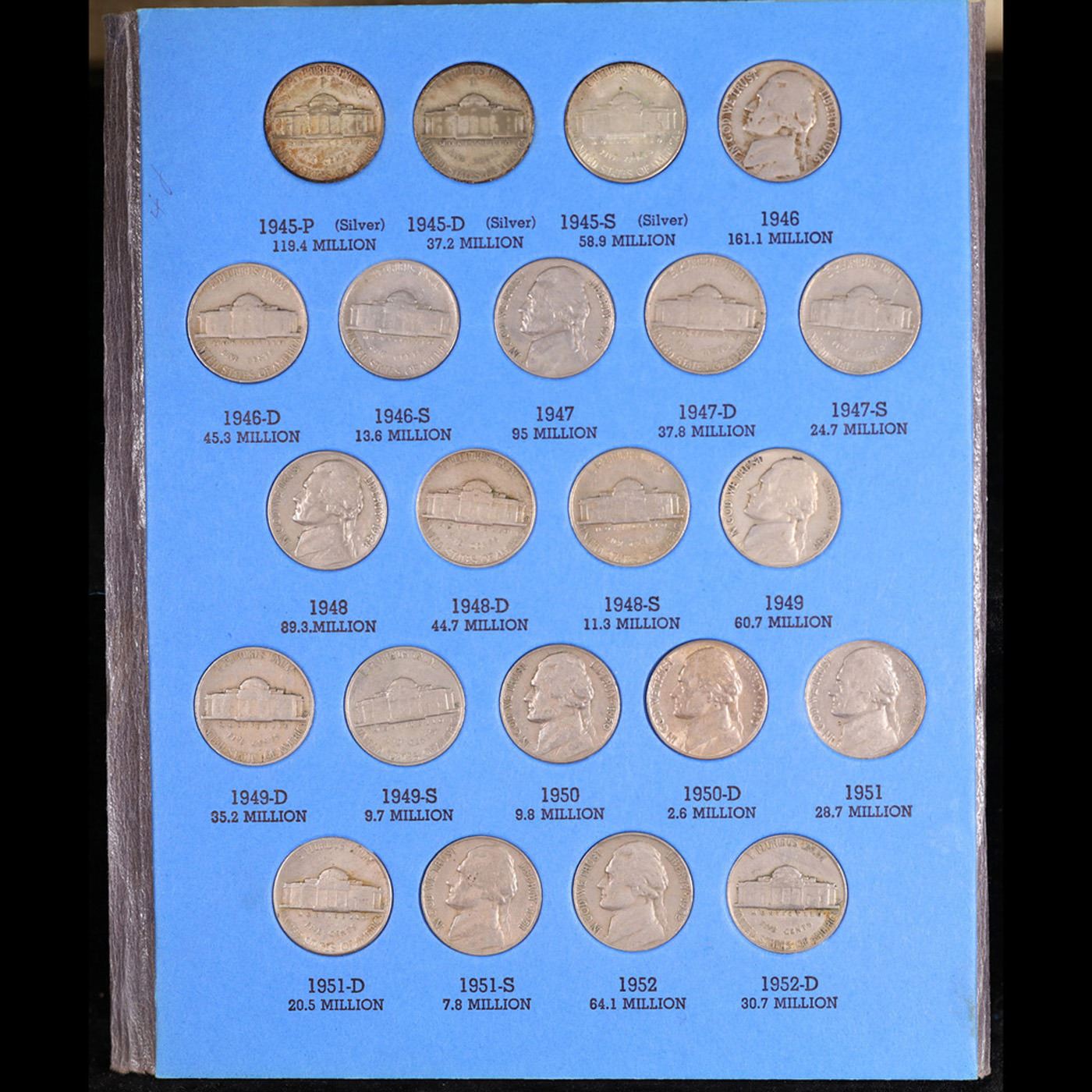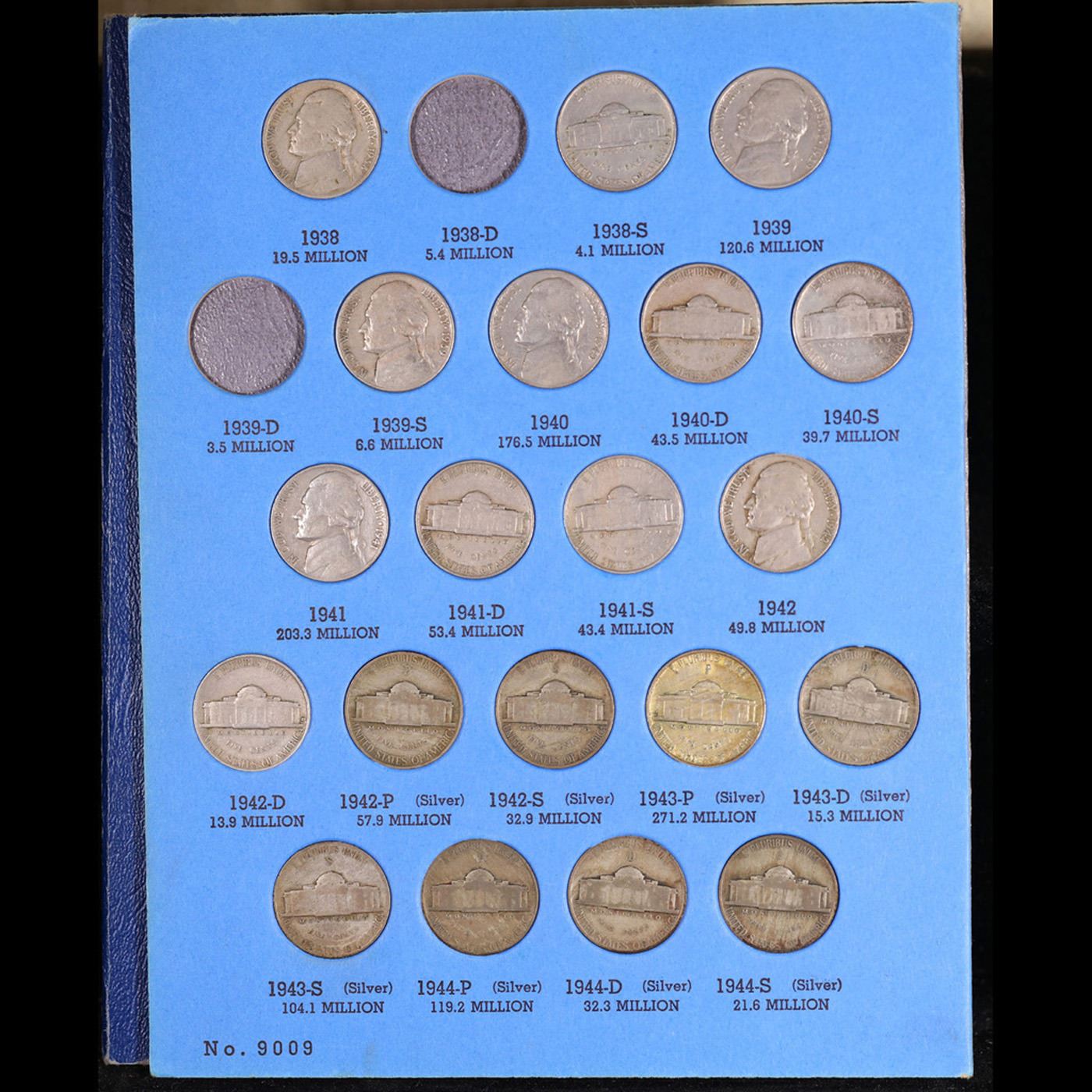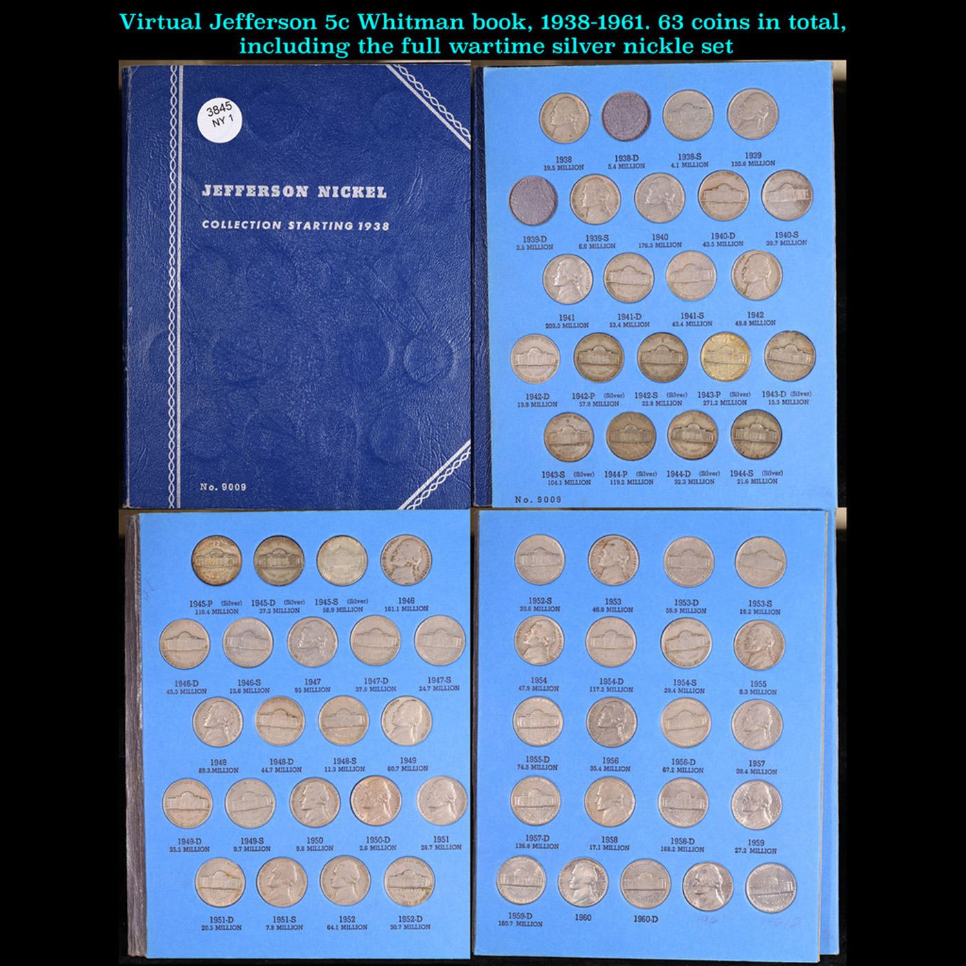 Virtual Jefferson 5c Whitman book, 1938-1961. 63 coins in total, including the full wartime silver n
