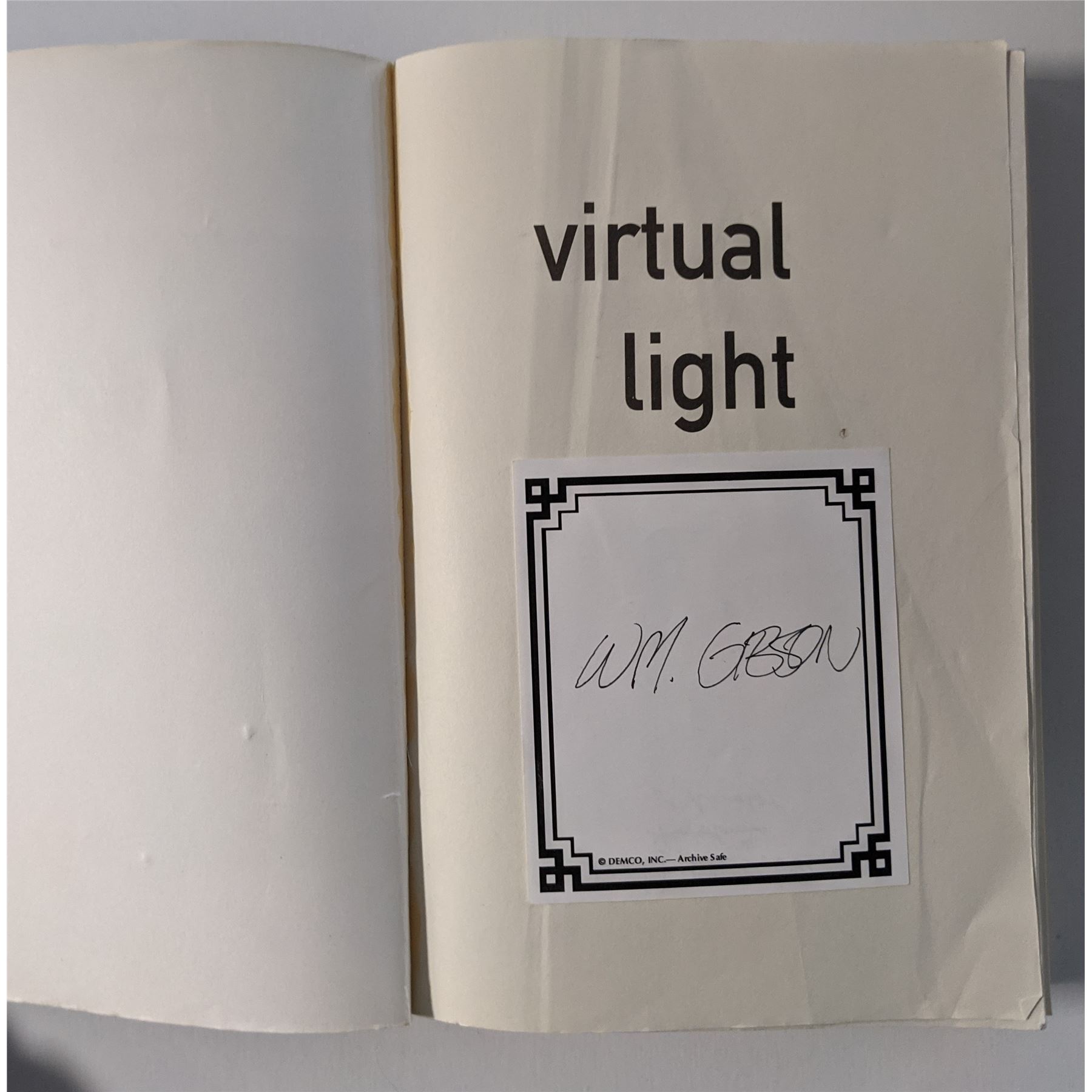 Virtual Light Book Signed by William Gibson. 6x9 inches