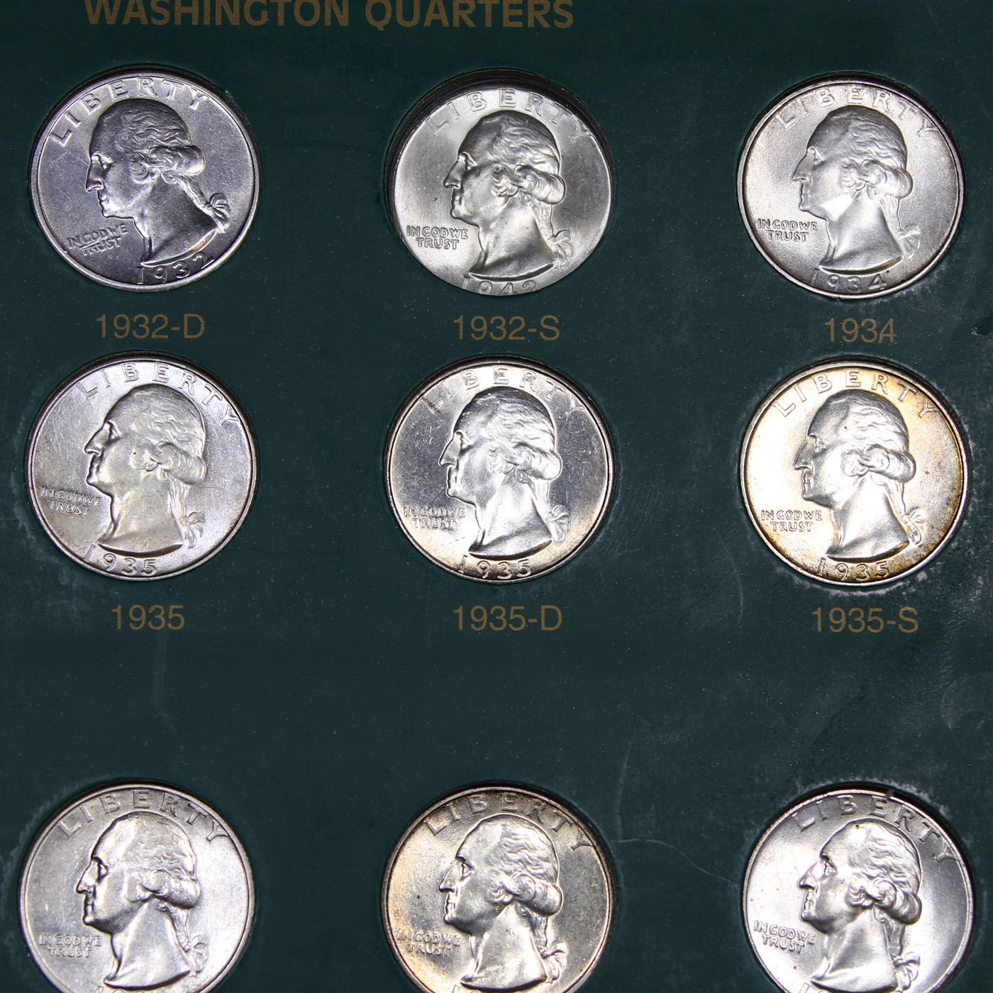 Virtually Complete 1932-1991 Washington Quarter 25c Book 155 Coins Including Proofs Missing only 3 coins. Missing Only the 32-s,34-d, & 37-s