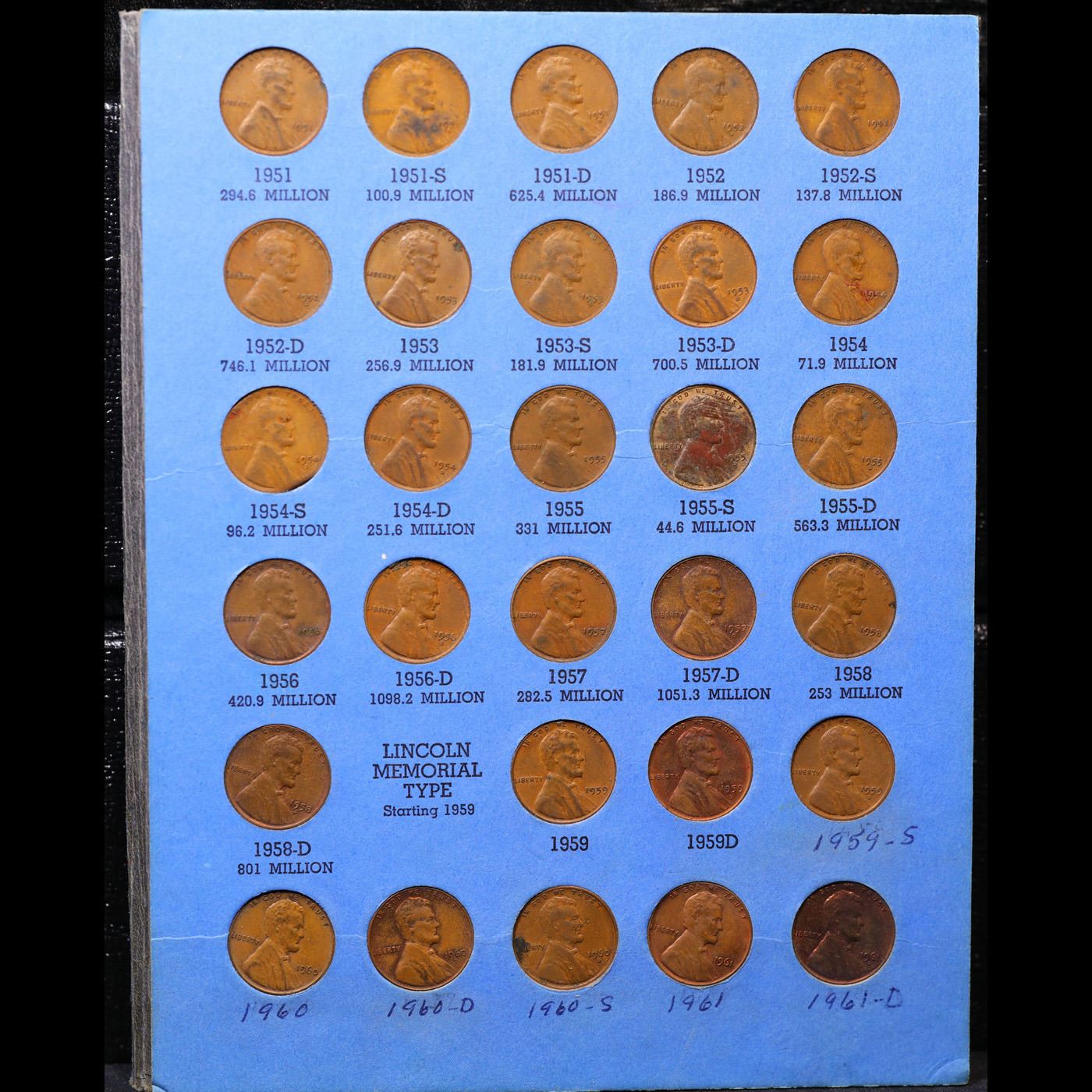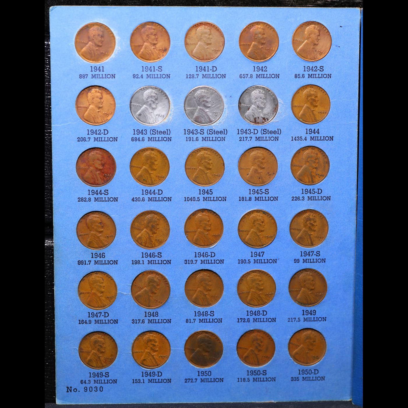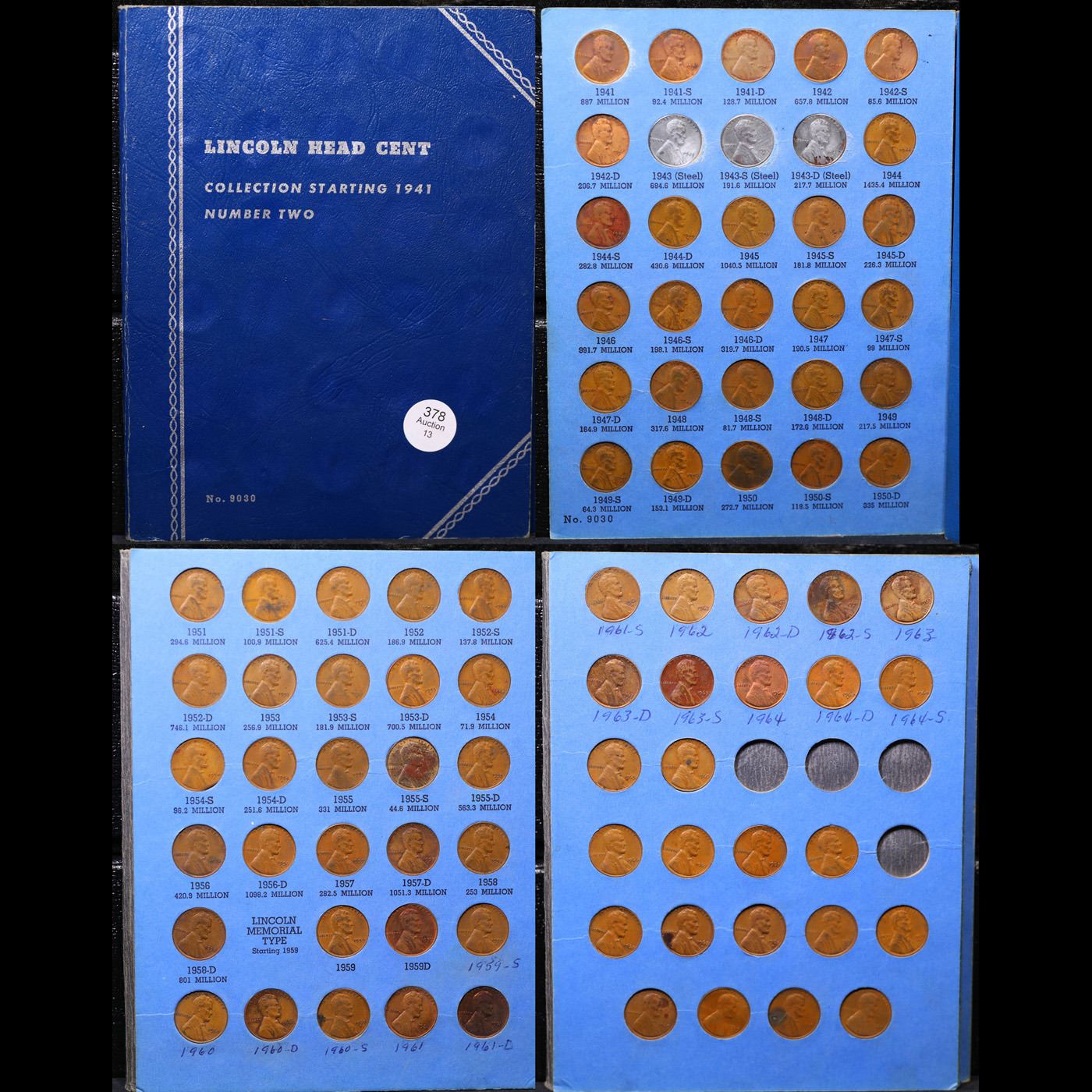 Virtually Complete Lincoln Cent Book 1941-1969 85 coins. All coins encased in Whitman Folder. Dates range from 1941-1969. A fantastic grouping of 85 coins.