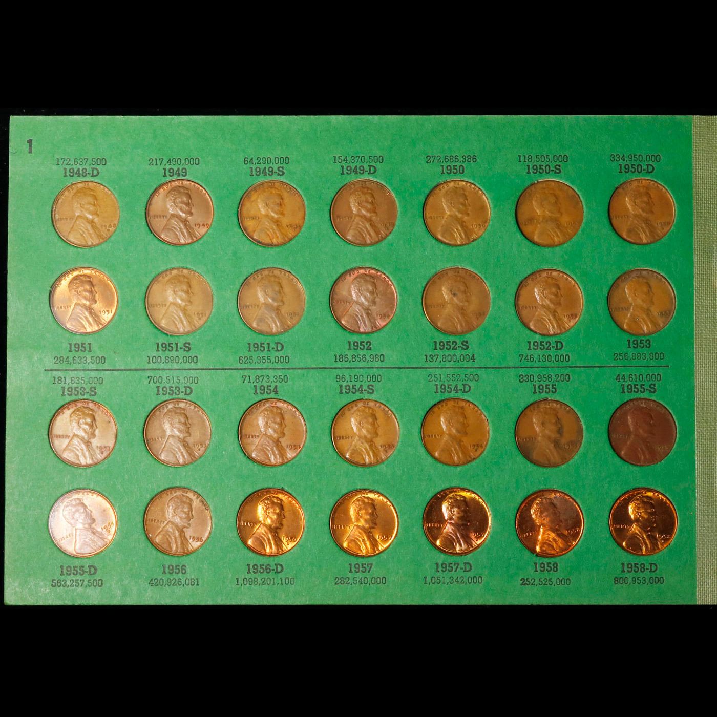 Virtually Complete Lincoln Cent Book 1948-1964 44 coins. All coins encased in a Popular Album. Dates range from 1948-1964. A great collection of 40 coins with 4 bonus coins also included
