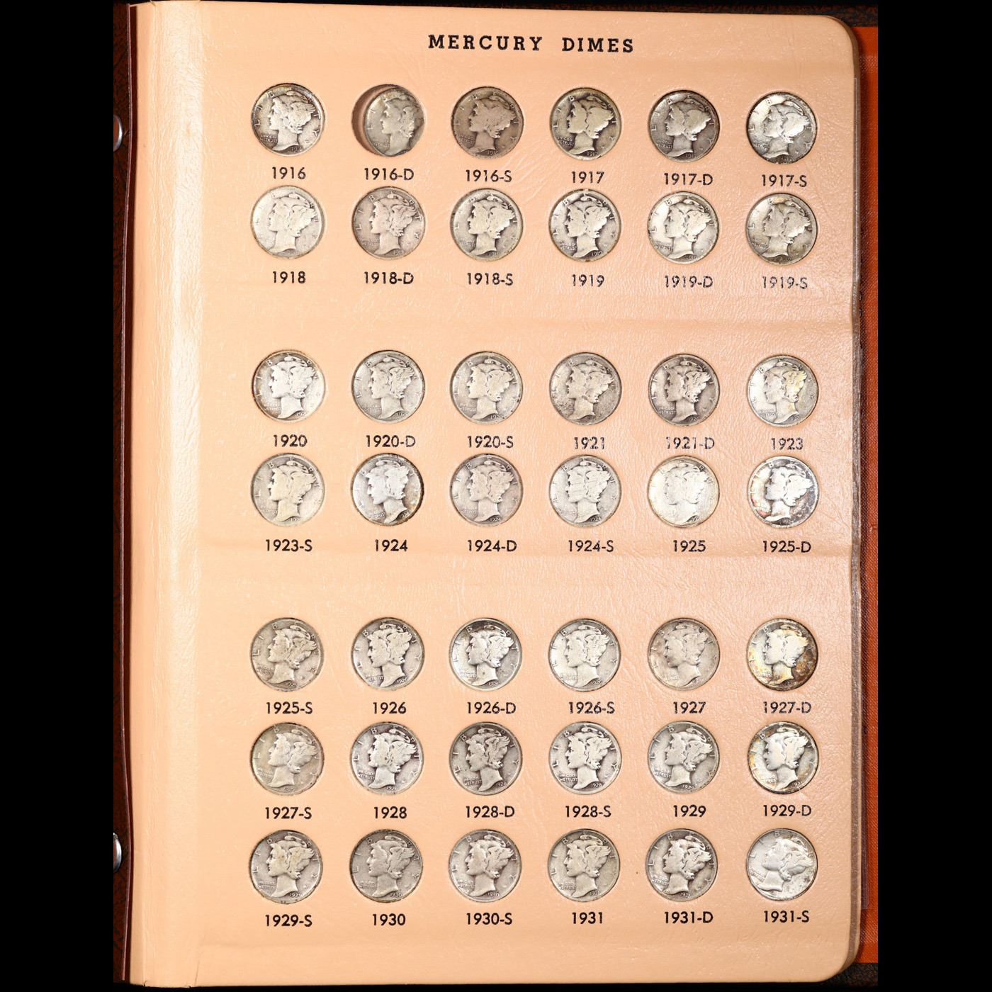 Virtually Complete Mercury 10c Dansco book. 1964-1985, 76 coins. Missing only 1916-d