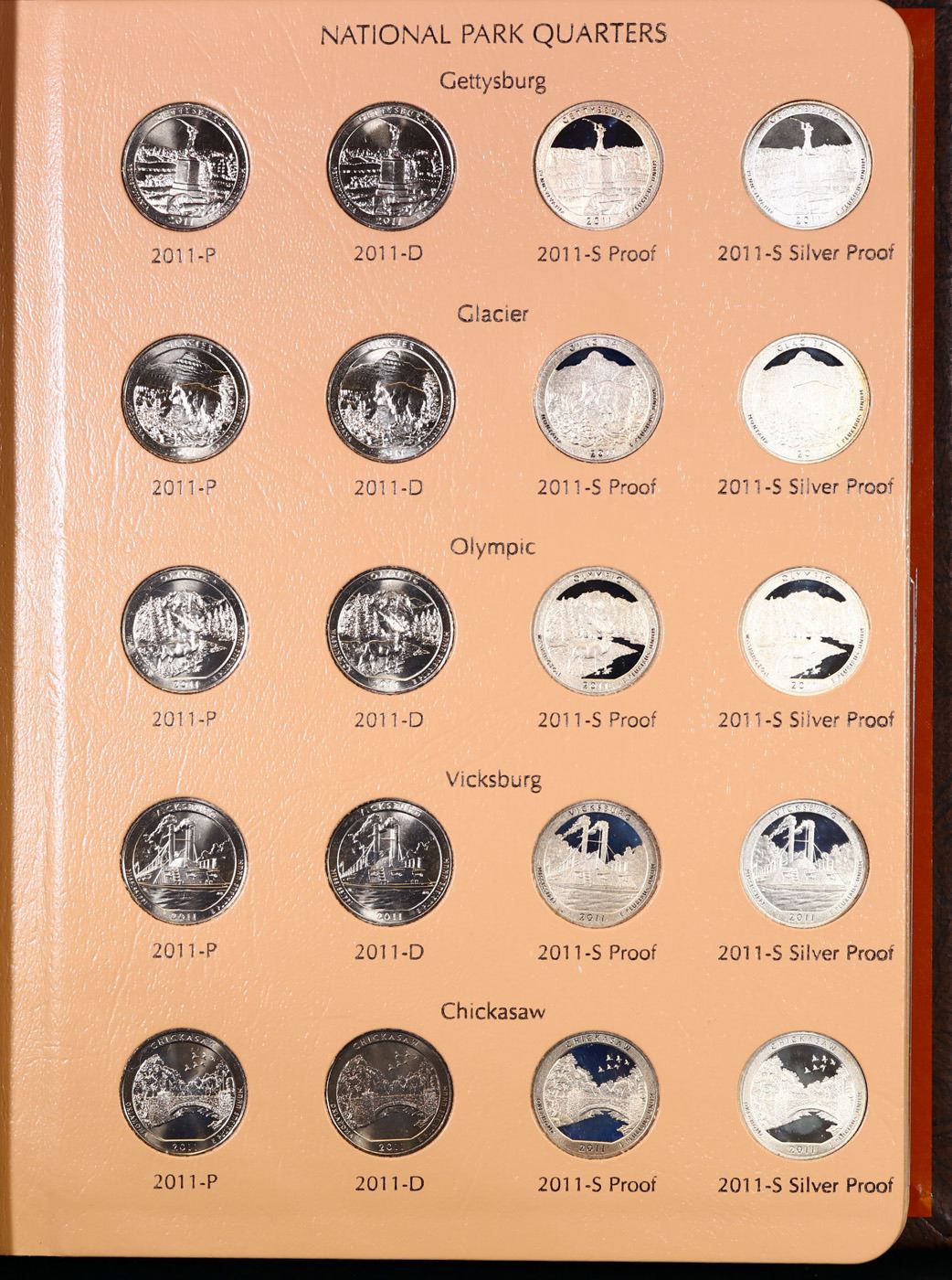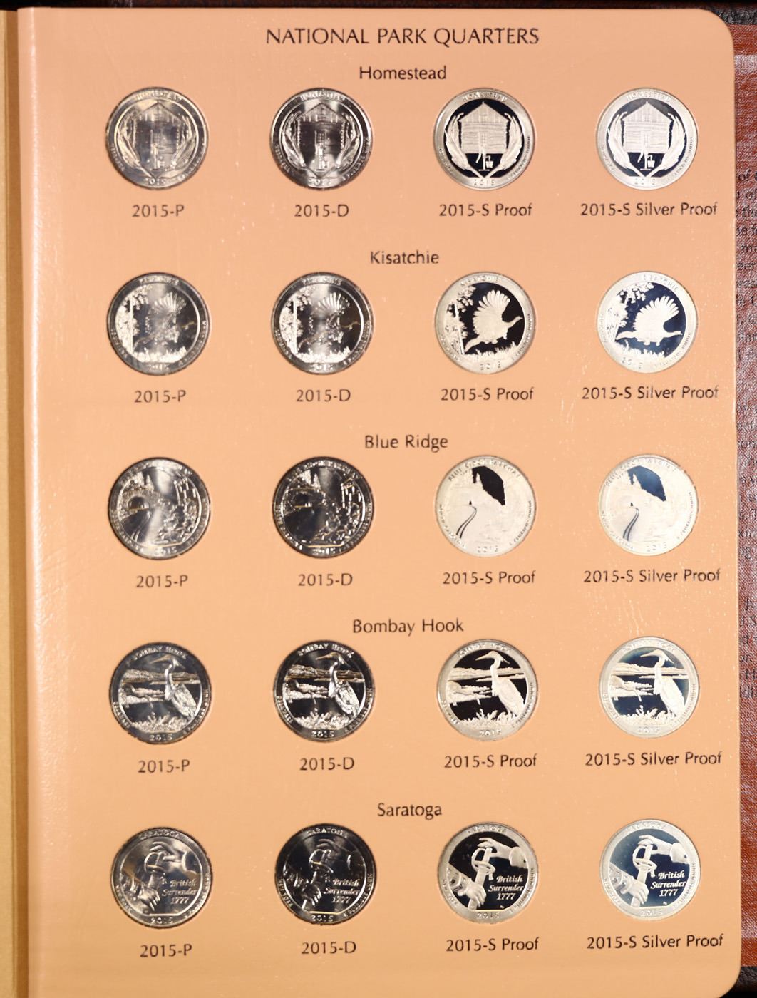 Virtually Complete National Park 25c Dansco book including proof-only issue, 2010-2015. 120 coins
