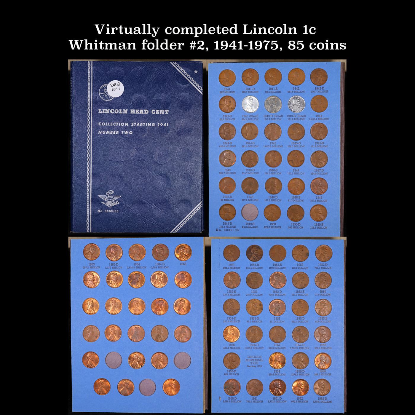 Virtually completed Lincoln 1c Whitman folder #2, 1941-1975, 85 coins. Missing only 1949-s, 1972-s,