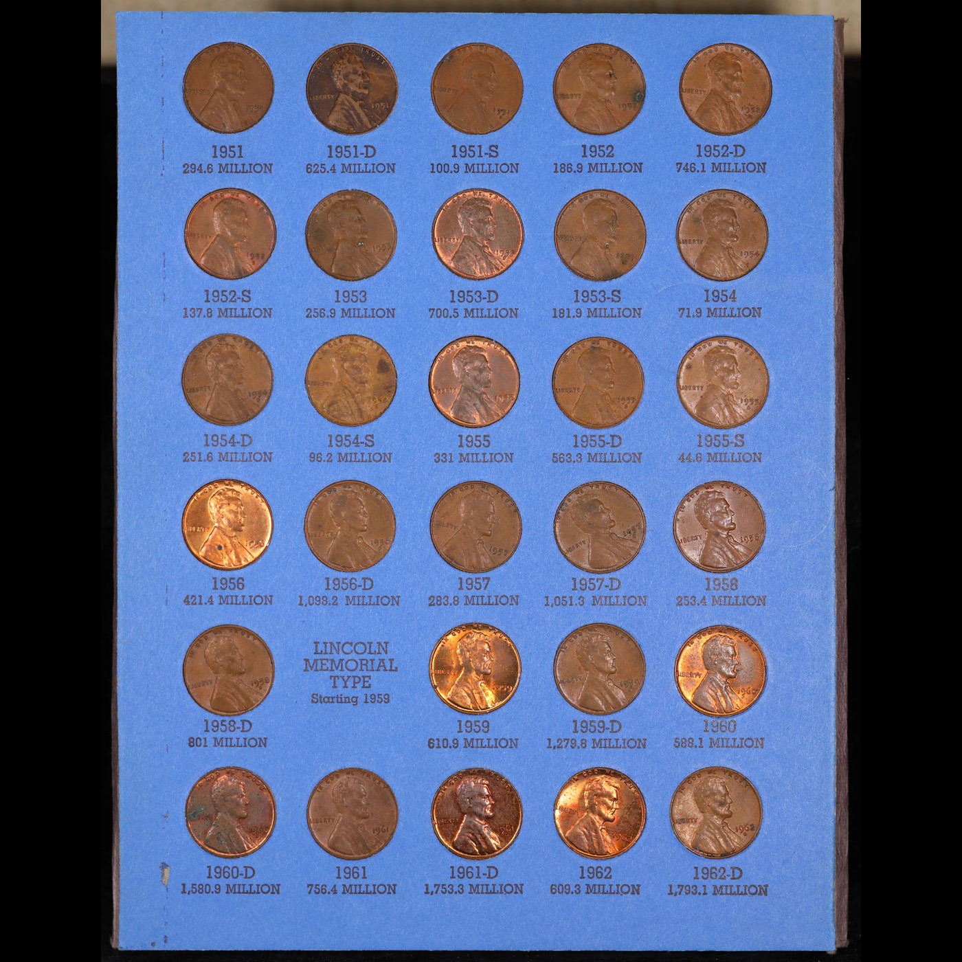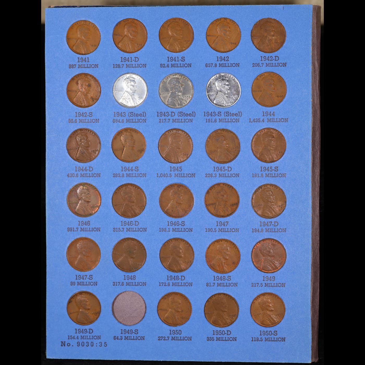 Virtually completed Lincoln 1c Whitman folder #2, 1941-1975, 85 coins. Missing only 1949-s, 1972-s, 1973-s and 1974-s.. All coins encased in a Whitman Lincoln Cent 1941-"Present Day" book #2. Date Range from 1941-1975. A fantastic grouping of 85 coins.