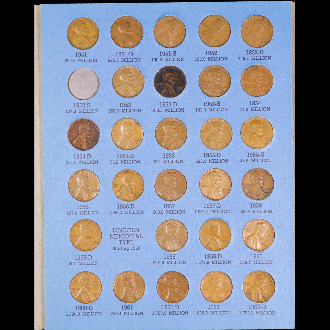 Virtualy Complete Lincoln 1c Whitiman Album, 1941-1968, 79 coins in Total