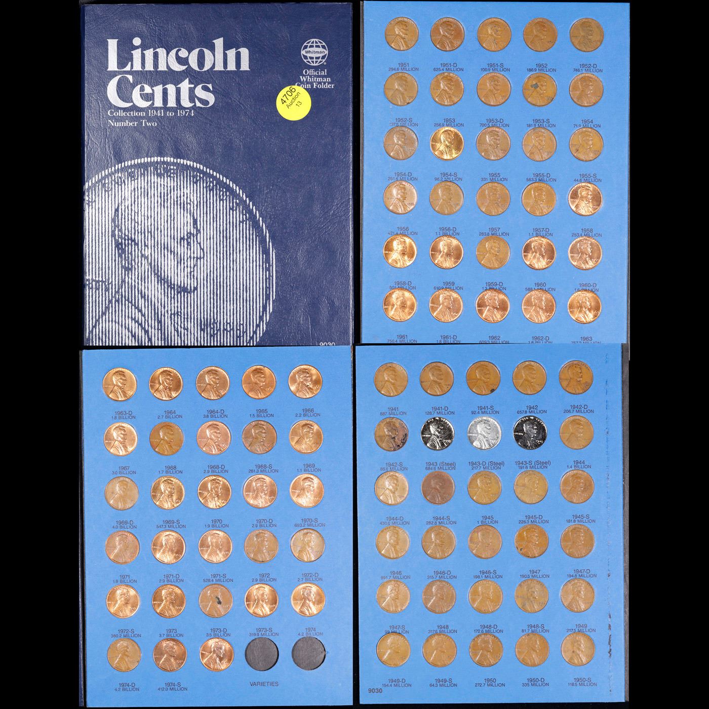 Virtualy Complete Lincoln 1c Whitiman Album, 1941-1973, 88 coins in Total