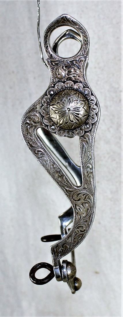Desirable fully silver over laid California style show bit with beautifully engraving, maker's mark and Mona Lisa mouth piece.