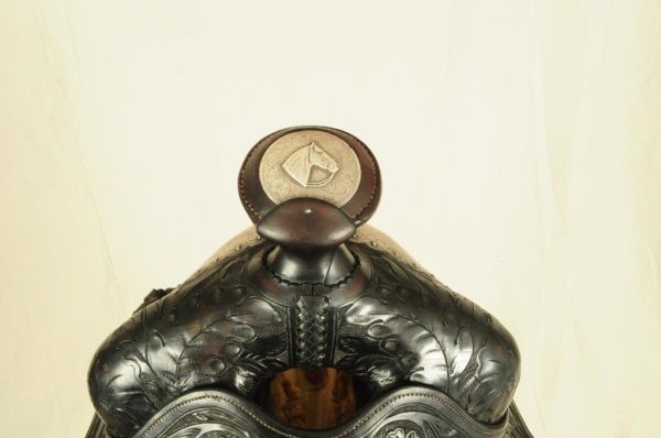 Outstanding special order Visalia Stock Saddle co. Cowgirl sized fully floral tooled circa 1930s silver mounted saddle Silver plate in the center of the seat inscibed. " Visalia Stock Saddle Company made expressly for E.C. Greason # A-18649". excellent condition.