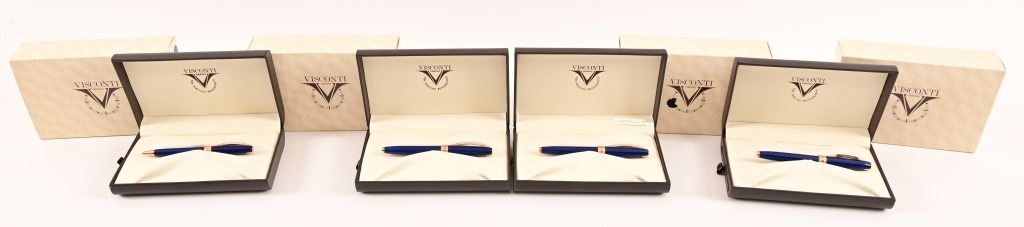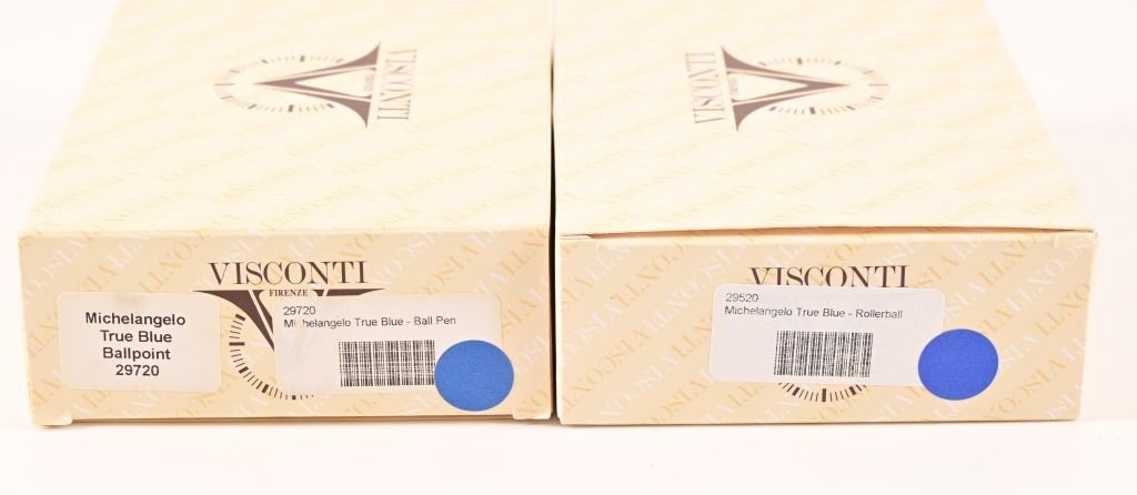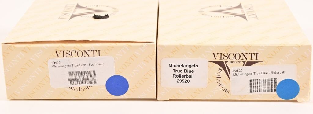Visconti Firenze Michelangelo True Blue fountain, ballpoint and rollerball pen collection. All in very good-excellent condition, with original boxes.