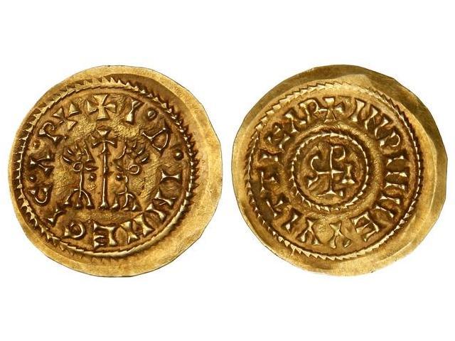 Visigothic Coins - Triente. EGICA y VITIZA (694-702). ISPALI (Baética). Anv.: I.:INNEGIC. Rev.: INPINMEVVITTI. S-P-A-L dentro de círculo. 1,31 grs. MUY RARA. Miles-481a var.; VCC-568 var. puntuación en leyenda anv. EBC+/EBC-.