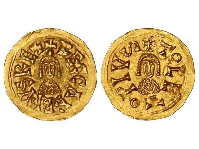Visigothic Coins - Triente. RECAREDO I (586-601). TOLETO (Carthaginensis). Anv.: RECCREDVS RE. Rev.: TOLETO PIV. 1,48 grs. ESCASA. Miles-81c y e; VCC-73.2. SC.