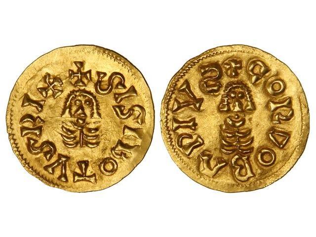 Visigothic Coins - Triente. SISEBUTO (612-621). CORDOBA (Baética). Anv.: SISIBOTVS RI. Rev.: COR(invertida) OBPIV. 1,48 grs. RARA. Miles-185; VCC-216.2 var. R/R en lugar de B. EBC+.