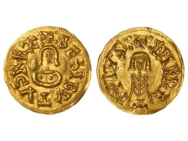 Visigothic Coins - Triente. SISEBUTO (612-621). EMERITA (Lusitania). Anv.: :SESIBVTVS REX (dos C contrapuestas):. Rev.: :EMERE/T/PIVS:. 1,50 grs. VCC-258.20. EBC.