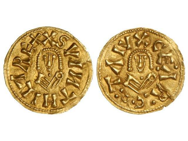 Visigothic Coins - Triente. SUINTHILA (621-631). CESARAUGUSTA (Tarraconensis). Anv.: XSVITHILREX. Rev.: XCE:R:CO:TIV. 1,31 grs. (Pequeña grieta en reverso). RARA. Miles-213a; VCC-334. EBC+.