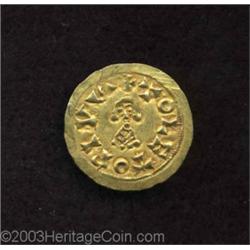 <TABLE cellSpacing=0 cellPadding=0 width="100%" bgColor=#000000 border=0><TBODY> <TR><TD width="100%"><TABLE cellSpacing=1 cellPadding=3 width="100%" border=0><TBODY><TR><TD width="100%" bgColor=#79735c><FONT face=arial color=#ffffff size=3><B>Description</B> </FONT></TD></TR><TR><TD width="100%" bgColor=#ffffff><FONT face=arial size=2><B>Visigoths. Suinthila.</B></I> A.D. 621-631. AV tremissis (20 mm, 1.45 g). Toledo. + SVINTHILA REX, facing bust of king / + TOLETO PIVS, facing bust of king. Miles 223a; Chaves 180; MEC 242. XF. </FONT></TD></TR></TBODY></TABLE></TD></TR></TBODY></TABLE><BR><A name=PricesRealized></A><TABLE cellSpacing=0 cellPadding=0 width="100%" bgColor=#000000 border=0><TBODY><TR><TD width="100%"><TABLE cellSpacing=1 cellPadding=3 width="100%" border=0><TBODY><TR><TD width="100%" bgColor=#79735c><A name=PR><FONT face=arial color=#ffffff size=3><B>Previous Prices from Heritage Auctions</B> </FONT></A></TD></TR><TR><TD bgColor=#f6f6ed>No Prior Data Recorded </TD></TR><TR><TD bgColor=#ffffff><FONT face=arial size=1 ?>PLEASE NOTE: All prices realized reflect the final hammer price PLUS the buyer's premium in auctions that charge a buyer's premium. Each item has a notation at the top of the listing indicating whether that lot included a buyer's premium. Example: A item that sells with a final hammer price of $100 and a 20% buyer's premium will display with a price realized of $120. All information listed is intended to be as accurate as possible, but errors are possible. Please use this guide carefully and inform us of any inaccuracies. </FONT></TD></TR></TBODY></TABLE></TD></TR></TBODY></TABLE><BR><TABLE cellSpacing=0 cellPadding=0 width="100%" bgColor=#000000 border=0><TBODY><TR><TD width="100%"><TABLE cellSpacing=1 cellPadding=3 width="100%" border=0><TBODY><TR><TD width="100%" bgColor=#79735c colSpan=6><FONT face=arial color=#ffffff size=3><B>Price Guide*</B> </FONT></TD></TR><TR bgColor=#f6f6ed><TD align=middle><B>Grade</B> </TD><TD align=middle><B>Coin World<BR>(Trends)</B> </TD><TD align=middle><B>Numismedia<BR>Retail</B> </TD><TD align=middle><B>Numismedia<BR>Wholesale</B> </TD><TD align=middle><B>Coin<BR>Universe</B> </TD><TD align=middle><B>Heritage<BR>Value Index</B> </TD></TR><TR bgColor=#ffffff><TD colSpan=6><FONT size=1>*All information listed is intended to be as accurate as possible, but errors are possible. No item may be returned or refused based on this information which is provided as a service to our customers. You should contact each pricing source directly to determine the accuracy of this information. </FONT></TD></TR></TBODY></TABLE></TD></TR></TBODY></TABLE><BR><TABLE cellSpacing=0 cellPadding=0 width="100%" bgColor=#000000 border=0><TBODY><TR><TD width="100%"><TABLE cellSpacing=1 cellPadding=3 width="100%" border=0><TBODY><TR><TD width="100%" bgColor=#79735c><FONT face=arial color=#ffffff size=3><B>Population Guide</B> </FONT></TD></TR><TR bgColor=#ffffff> Important notice: Heritage usually auctions material at the rate of 200-250 lots per hour. On some occasions eBay Live bid software or the Internet may not be able to keep up with the pace of the auction. We recommend placing a realistic absentee bid now as insurance to avoid disappointment. Occasionally the auctioneer may eliminate or reject an eBay Live bid, and the auctioneer may also reopen a lot after the close of the eBay live bidding (usually because we missed an audience bid), and may reject your bid even if it shows you as the winning bidder. By bidding via eBay Live, you agree that Heritage may award the lot to another bidder at its sole discretion under the circumstances described above or any other reasonable circumstances. Also please note that all Heritage lots purchased through eBay Live carry a 20% Buyer's Premium. Please make sure you read the Terms and Conditions before you bid.</TD></TR></TBODY></TABLE></TD></TR></TBODY></TABLE>